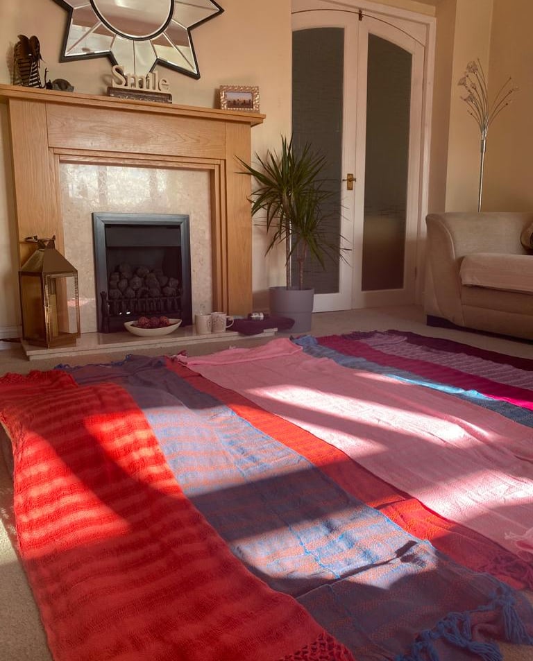 You will be in a comforting cocoon while you rest. A blanket is then placed over you. You will then be sung to lovingly using healing songs and sound around you whilst you are wrapped up. You will be unwrapped slowly a short while later when you have had time to fully relax into the cradled arms of the Rebozos and feel ready to do so.